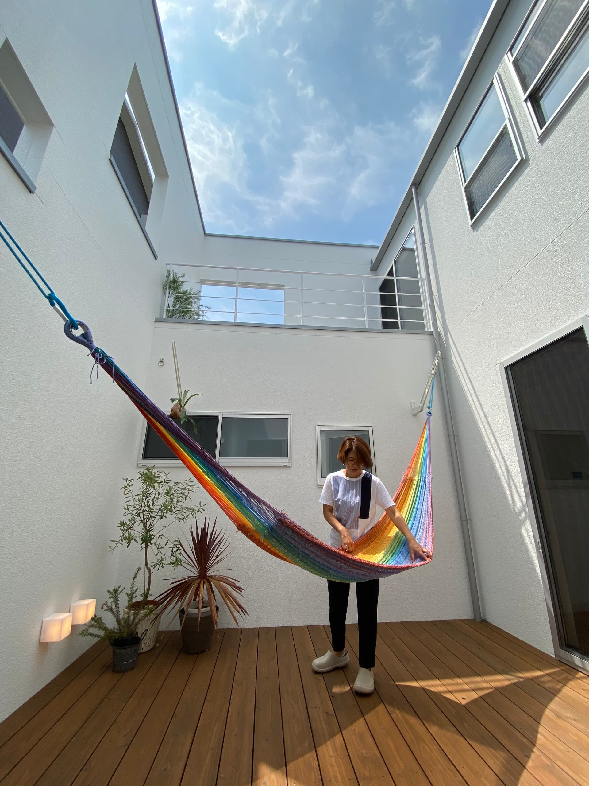 吊り床を設置してベッドとして使ったり、子供の秘密基地的な場所にしたり。