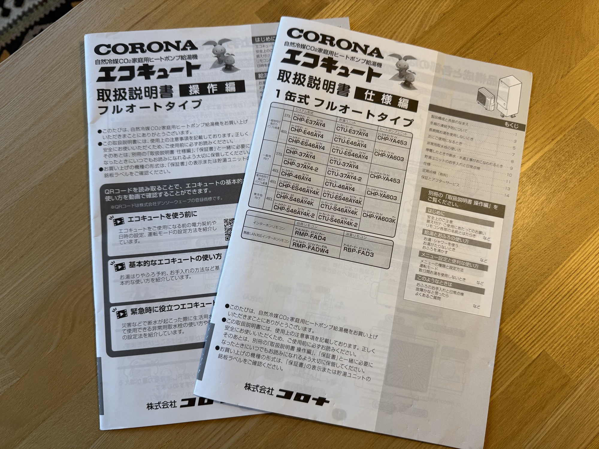 お引き渡し時に「取説ファイル」をお渡ししていますが、その中からエコキュート「取扱説明書 仕様編」を出してください。