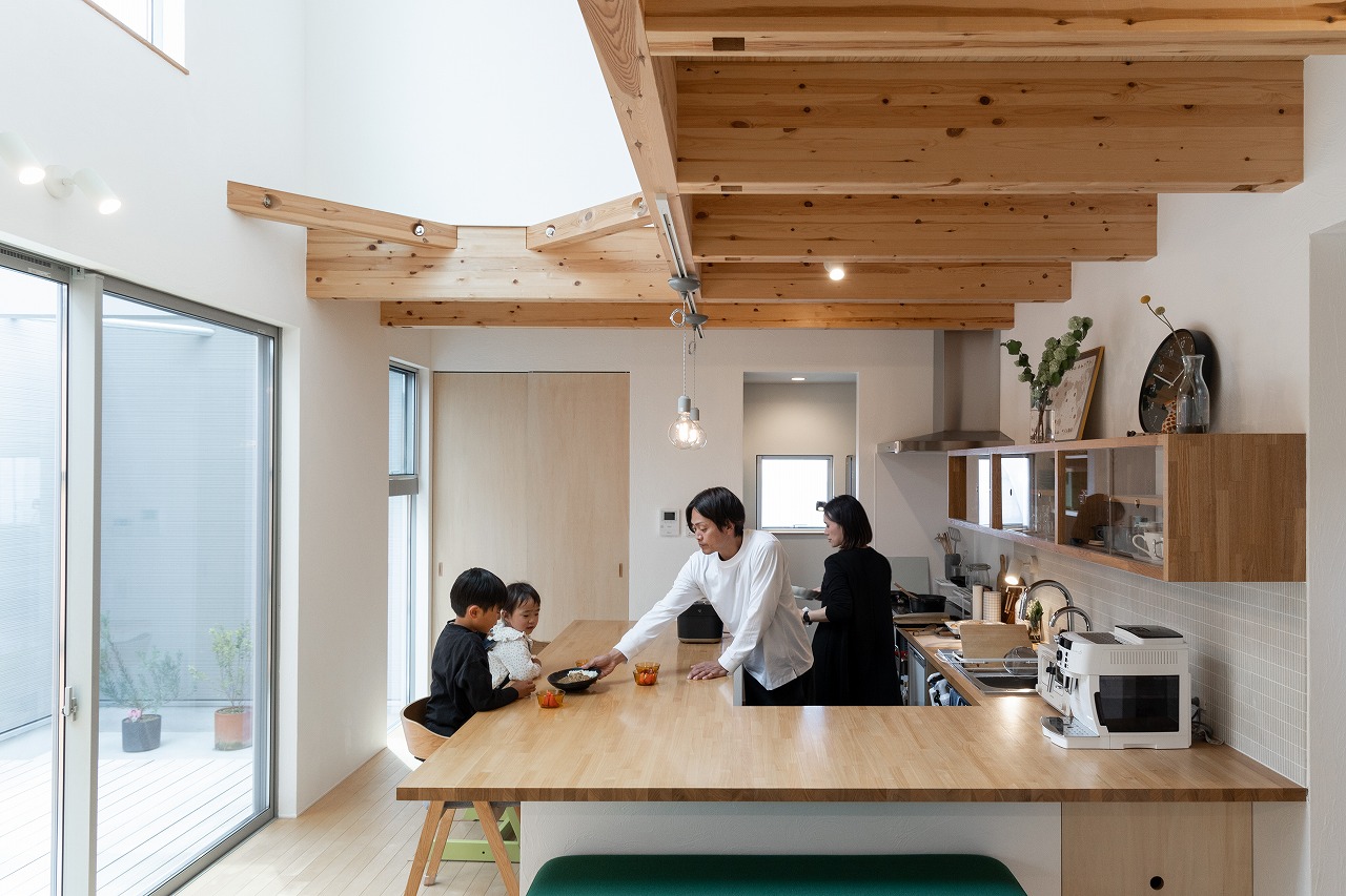 キッチンで食事作りをする人だけが孤立しないような「コの字キッチン」にしたいなど、お施主様は、どんな暮らしをしたいかしっかりと方向性が決まっていました。