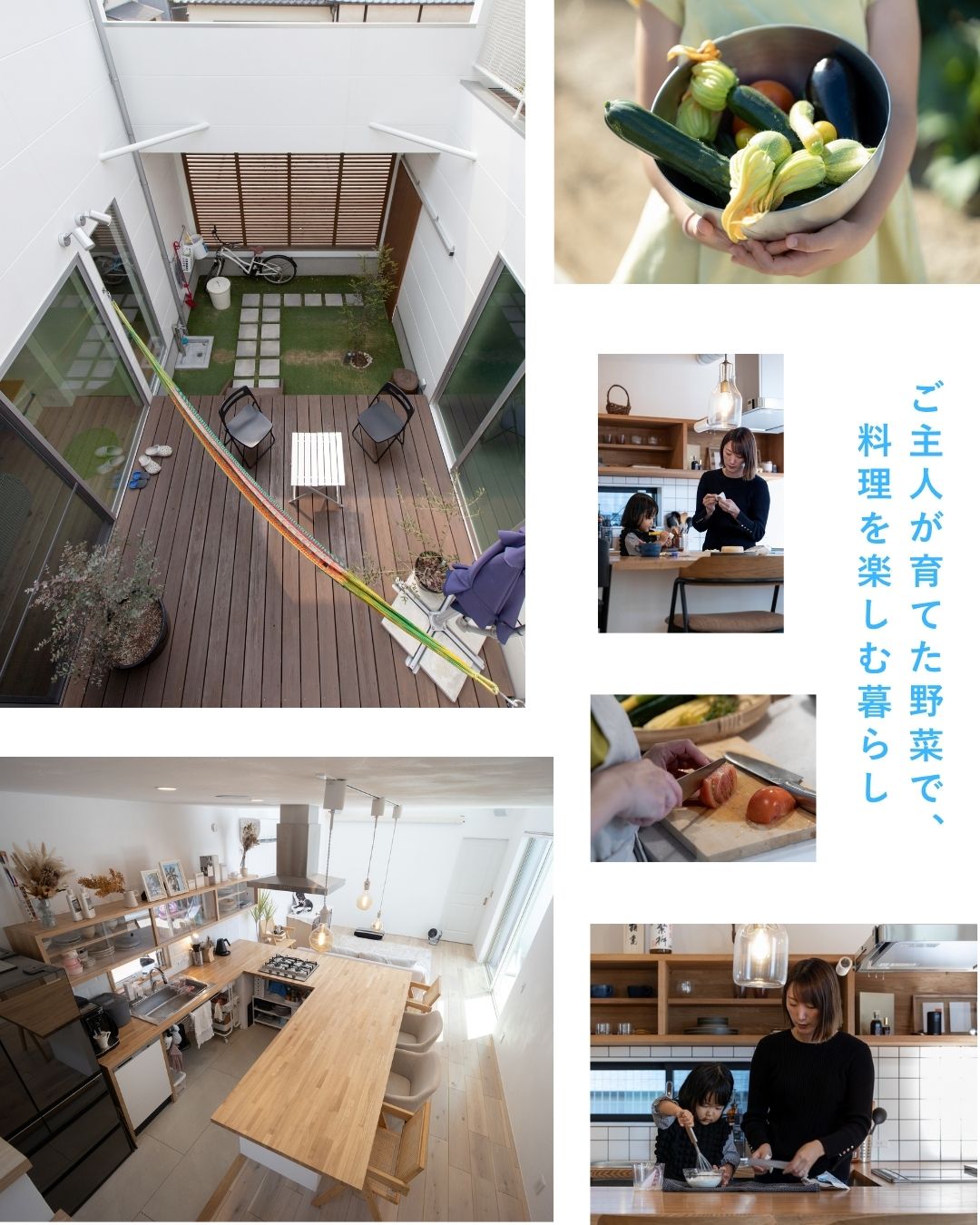 家の中心には、中庭の一角にご主人が家庭菜園を楽しむスペースを設け、