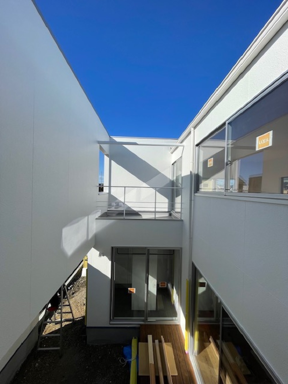 この後の工程では、1階の壁に真っ白のソラコッタを施工する予定です。