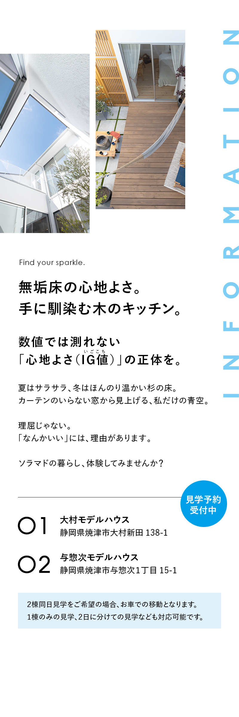 見学希望のモデルハウス※複数選択可 大村モデルハウス(静岡県焼津市大村新田)与惣次モデルハウス(静岡県焼津市与惣次) ご希望日程 第一希望日 時間を選択してください10:00~11:00~12:00~13:00~14:00~15:00~16:00~ 第二希望日 時間を選択してください10:00~11:00~12:00~13:00~14:00~15:00~16:00~ 参加者の人数 選択してください1人2人3人4人5人6人以上 お名前 ふりがな メールアドレス 電話番号 ご住所郵便番号 都道府県 都道府県を選択北海道青森県岩手県宮城県秋田県山形県福島県茨城県栃木県群馬県埼玉県千葉県東京都神奈川県新潟県富山県石川県福井県山梨県長野県岐阜県静岡県愛知県三重県滋賀県京都府大阪府兵庫県奈良県和歌山県鳥取県島根県岡山県広島県山口県徳島県香川県愛媛県高知県福岡県佐賀県長崎県熊本県大分県宮崎県鹿児島県沖縄県 市区町村 番地・建物名 その他気になることがあればご自由に 下記を確認してください 個人情報保護方針(別のウィンドウで開く)に同意する。